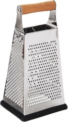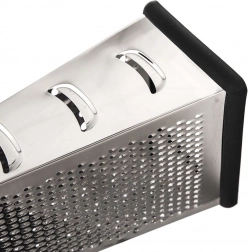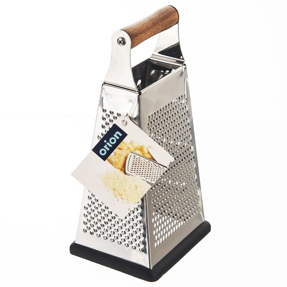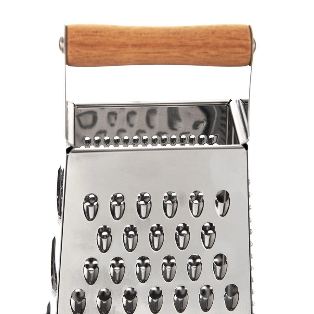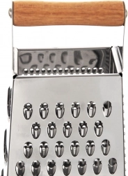 Odkryj uniwersalną kuchenną tarkę, która ułatwia przygotowanie warzyw, owoców, serów i przypraw. Korpus z stali nierdzewnej gwarantuje długą trwałość i ostre ostrza, a wygodna rączka z drewna akacjowego oraz antypoślizgowa gumowa podstawa zapewniają pewny chwyt i stabilność podczas pracy.