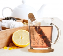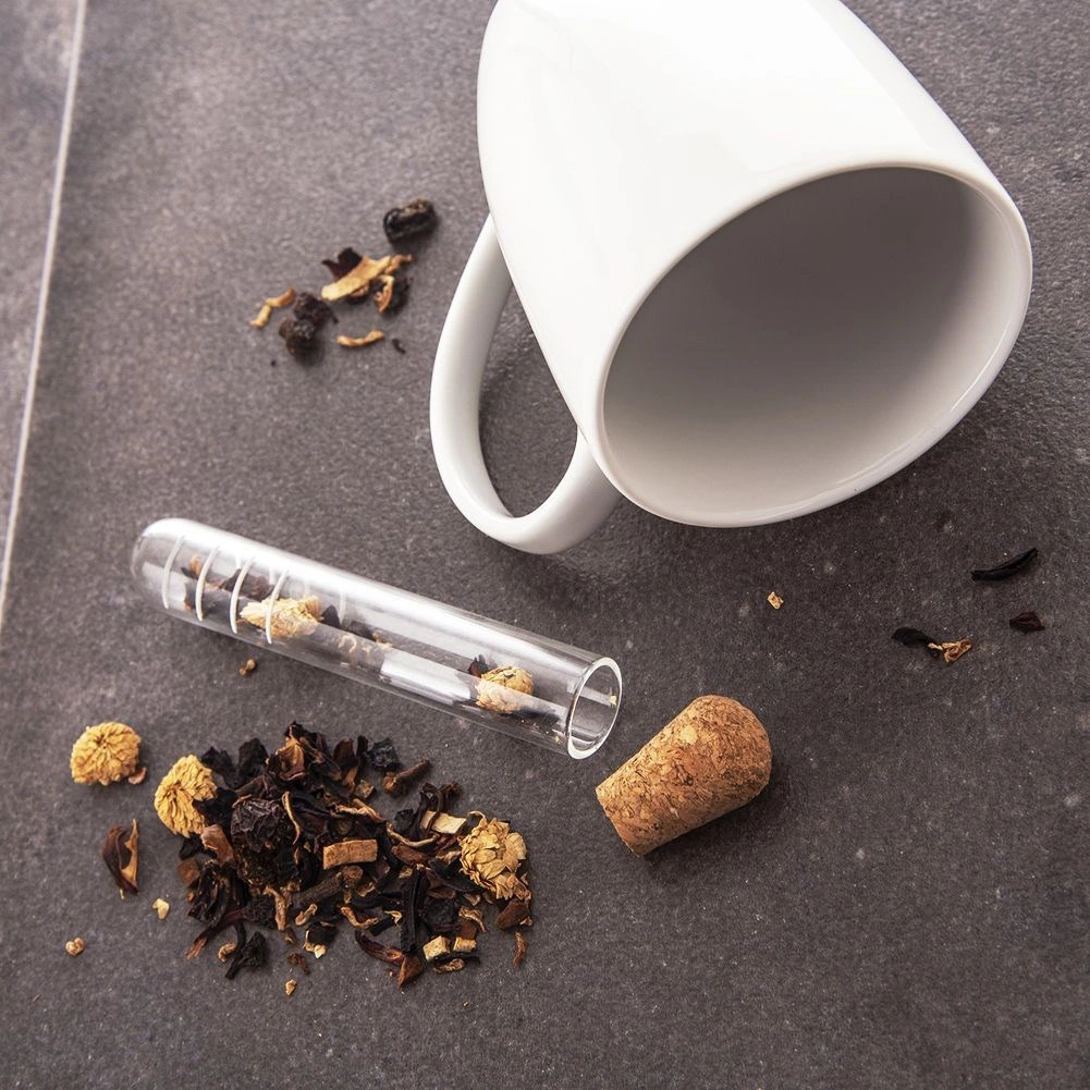 To eleganckie szklane sitko w kształcie fiolki umożliwia wygodne parzenie bezpośrednio w kubku, filiżance lub szklance. Drobne perforacje przepuszczają pełnię smaku i aromatu naparu, jednocześnie zatrzymując listki w środku. Korek z korka jest wystarczająco długi, aby bezpiecznie wyjąć sitko bez ryzyka poparzenia.