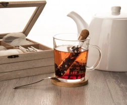 Kształt fiolki pasuje do większości kubków i szklanek. Długi korek z korka umożliwia łatwe wyciągnięcie bez poparzeń.