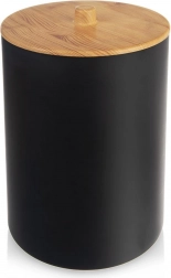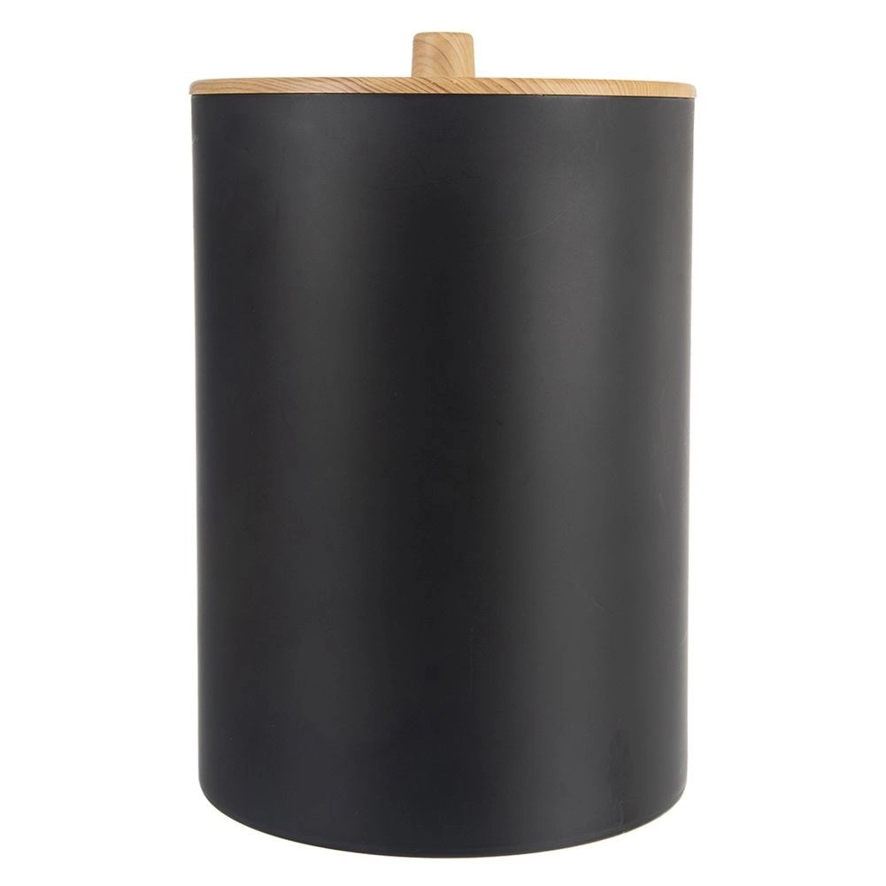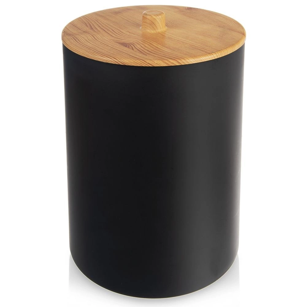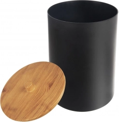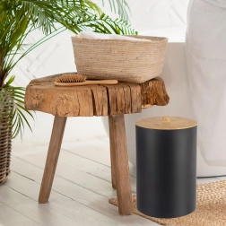 Minimalistyczny czarny wygląd z pokrywą w dekorze drewna prezentuje się dekoracyjnie i łatwo wpasowuje się w różne style wnętrz. Dzięki optymalnym wymiarom możesz ustawić kosz na podłodze, na blacie lub schować go do szafki.
