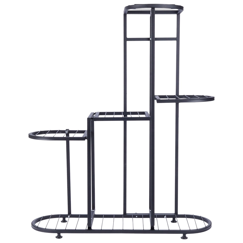Stylowy metalowy kwietnik z pięcioma poziomami oferuje praktyczne i dekoracyjne rozwiązanie dla Twoich roślin i dodatków. Dzięki wymiarom 69,5 × 23,5 × 84,5 cm oraz stabilnej konstrukcji każda półka udźwignie do 3 kg. Matowa czerń i industrialny loftowy design czynią z niego wyrazisty element każdego wnętrza. Idealny do mieszkania, biura oraz na zadaszony balkon.