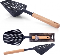 Ta wysokiej jakości łyżka cedzakowa jest idealna do codziennego gotowania. Dzięki nylonowej głowicy jest bezpieczna dla powierzchni teflonowych, granitowych i ceramicznych i nie porysuje nawet szklanych naczyń. Ergonomicznie wyprofilowana drewniana rączka zapewnia wygodny i pewny chwyt, a otwór na końcu umożliwia praktyczne zawieszenie na kuchennym relingu.