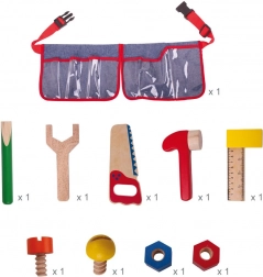 Dzięki regulowanej klamrze pas łatwo dopasować, zapewniając swobodę ruchów. Każdy element narzędzi jest idealnie dopasowany do małych dziecięcych dłoni, co wspiera rozwój małej motoryki i koordynacji. Zestaw zawiera 10 różnych elementów, oferując wiele możliwości kreatywnej zabawy.