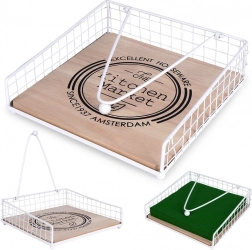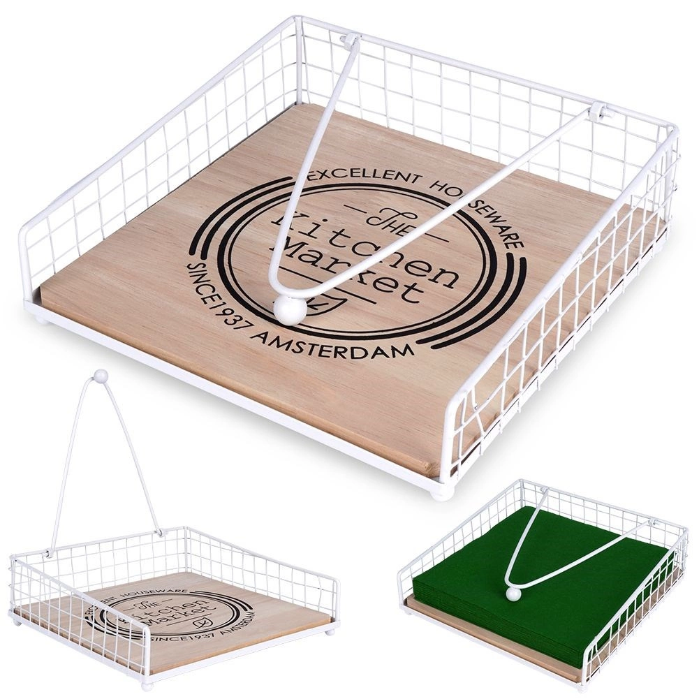 Elegancki i praktyczny stojak na serwetki z dociskiem utrzymuje serwetki stabilnie na miejscu w domu i na zewnątrz. Połączenie białego metalu i dębowego drewna z napisem „The Kitchen Market” doda Twojej kuchni stylu. Stabilny docisk, trwałe materiały oraz uniwersalne zastosowanie na stół, do ogrodu czy na taras.