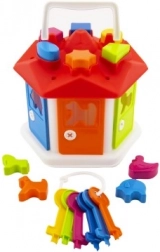 Sorter domek jest dostosowany dla najmłodszych dzieci, aby w zabawny sposób uczyły się rozpoznawania różnych kształtów geometrycznych i kolorów. Składa się z domku z otworami na dachu do wkładania poszczególnych plastikowych kształtów. Kolorowe drzwi otwierają się za pomocą kluczy, co zapewnia dzieciom dodatkowy poziom interakcji i wspiera cierpliwość oraz rozwiązywanie problemów.