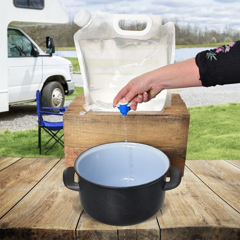 Praktyczny składany zbiornik na wodę o pojemności 4,8 l z zintegrowanym kranikiem do precyzyjnego dozowania. Dzięki elastycznemu korpusowi i składanej konstrukcji łatwo się przenosi i oszczędza miejsce. Posiada szeroki wkręcany wlew dla wygodnego napełniania, solidny uchwyt dla komfortowej obsługi oraz trwały, przezroczysty plastik, idealny na kemping, w podróży i do ogrodu.