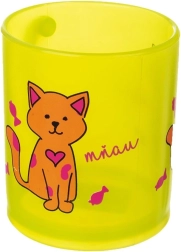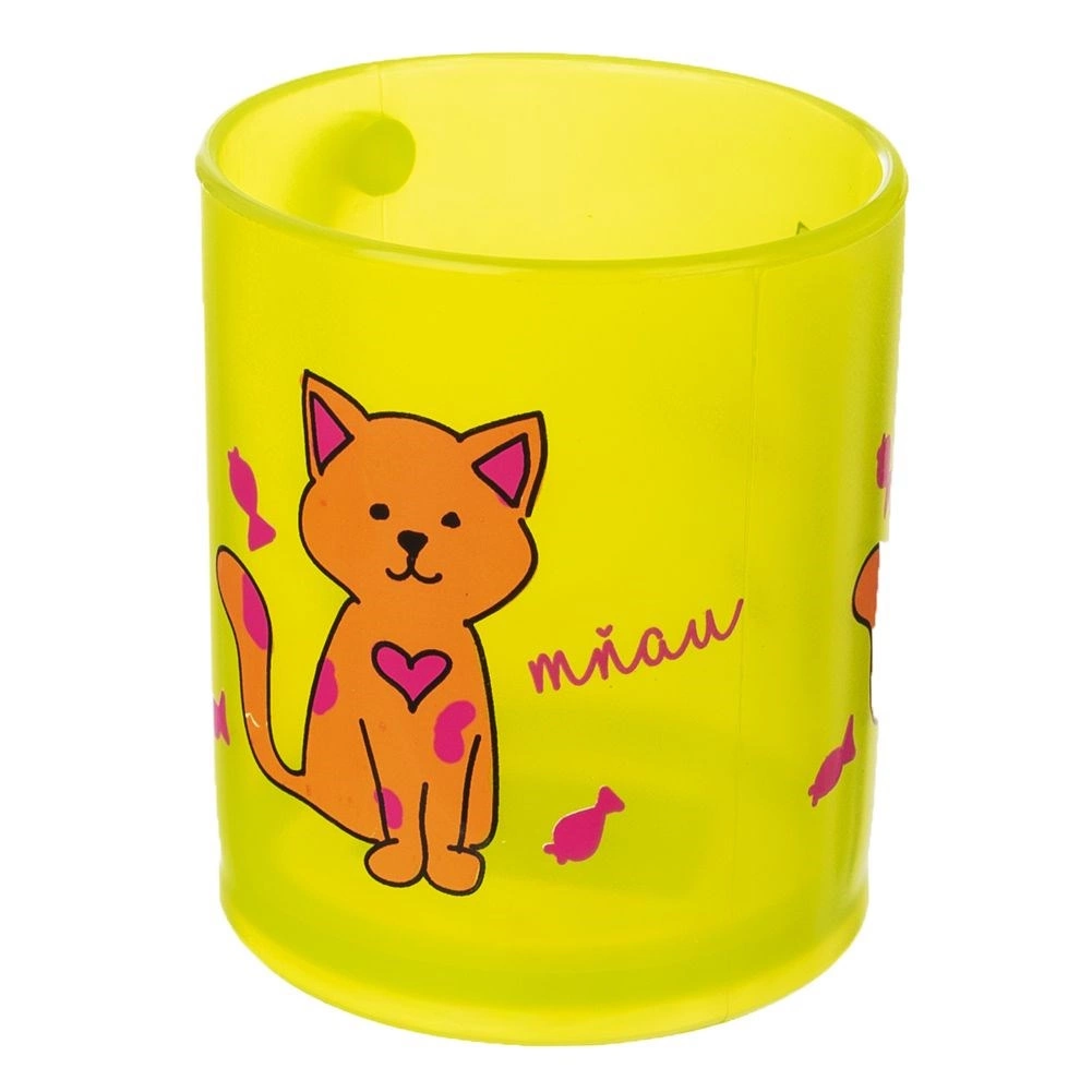 Lekki i wytrzymały dziecięcy kubek z uchem o pojemności 260 ml w półprzezroczystym żółtym kolorze z dekoracją kotka. Idealny do herbaty, wody, soku i kakao. Odpowiedni do zmywarki i kuchenki mikrofalowej, bez BPA, dla dzieci od 3 lat. Wytrzymały materiał, wygodne ucho i bezpieczne użytkowanie na co dzień.