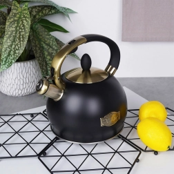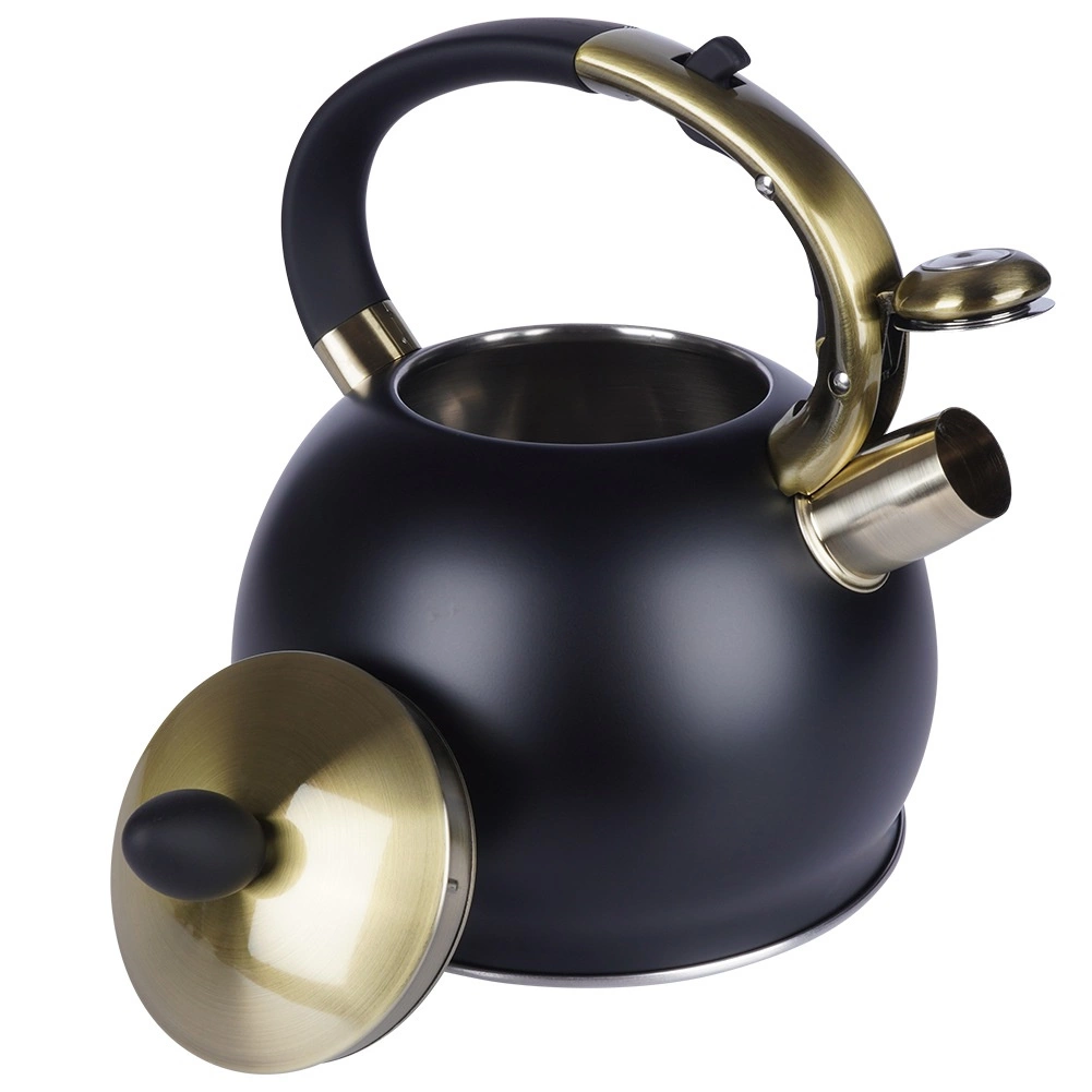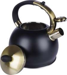 Ten stylowy czajnik wykonano z wysokiej jakości stali nierdzewnej, która jest trwała i neutralna smakowo. Dzięki połączeniu matowej czerni i złotych akcentów stanie się ozdobą designerską Twojej kuchni – zarówno nowoczesnej, jak i klasycznej. Praktyczna zdejmowana pokrywka ułatwia uzupełnianie wody i czyszczenie.
