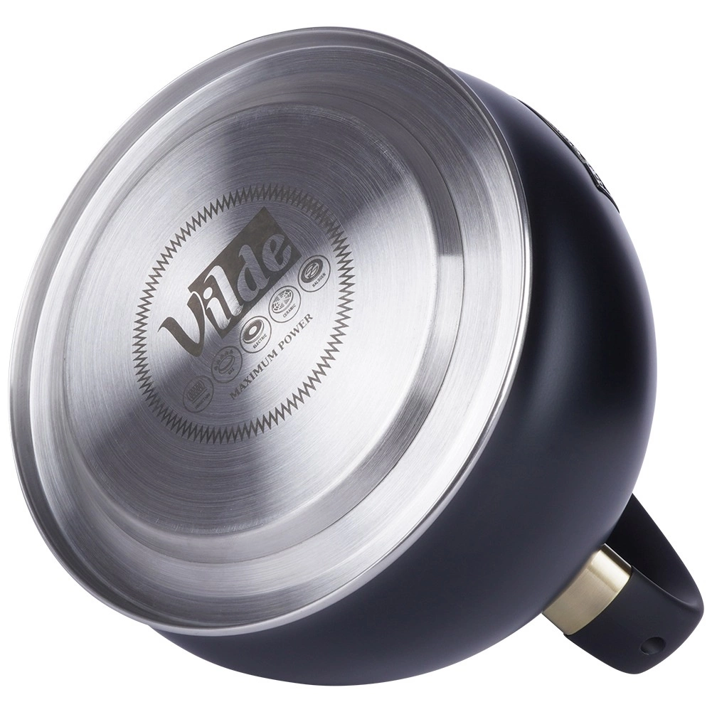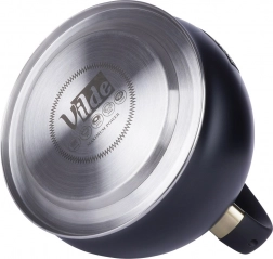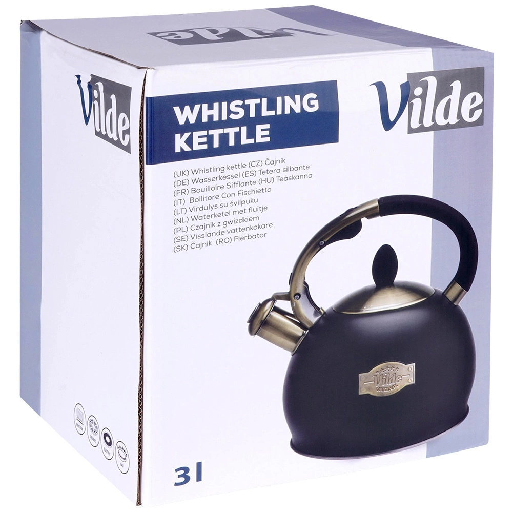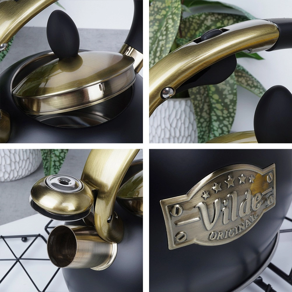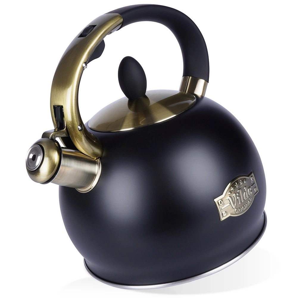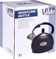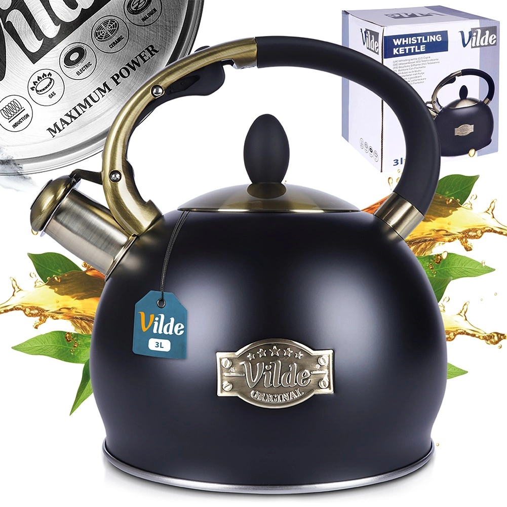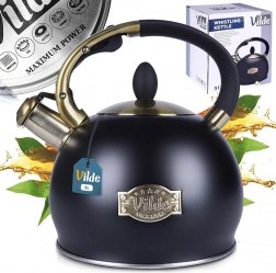 Matowa czerń w połączeniu z mosiężnymi detalami i emblematem Vilde nadaje czajnikowi ponadczasowy wygląd, który świetnie pasuje do nowoczesnych i klasycznych wnętrz.