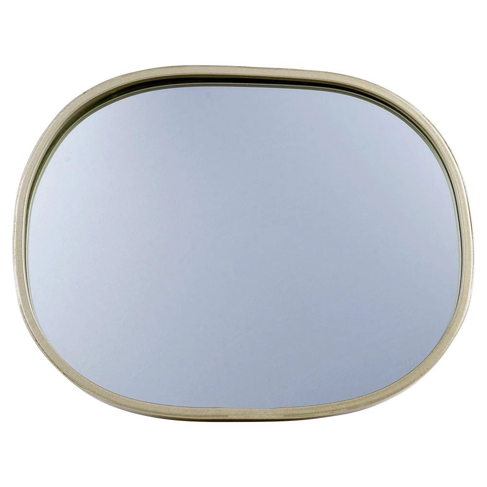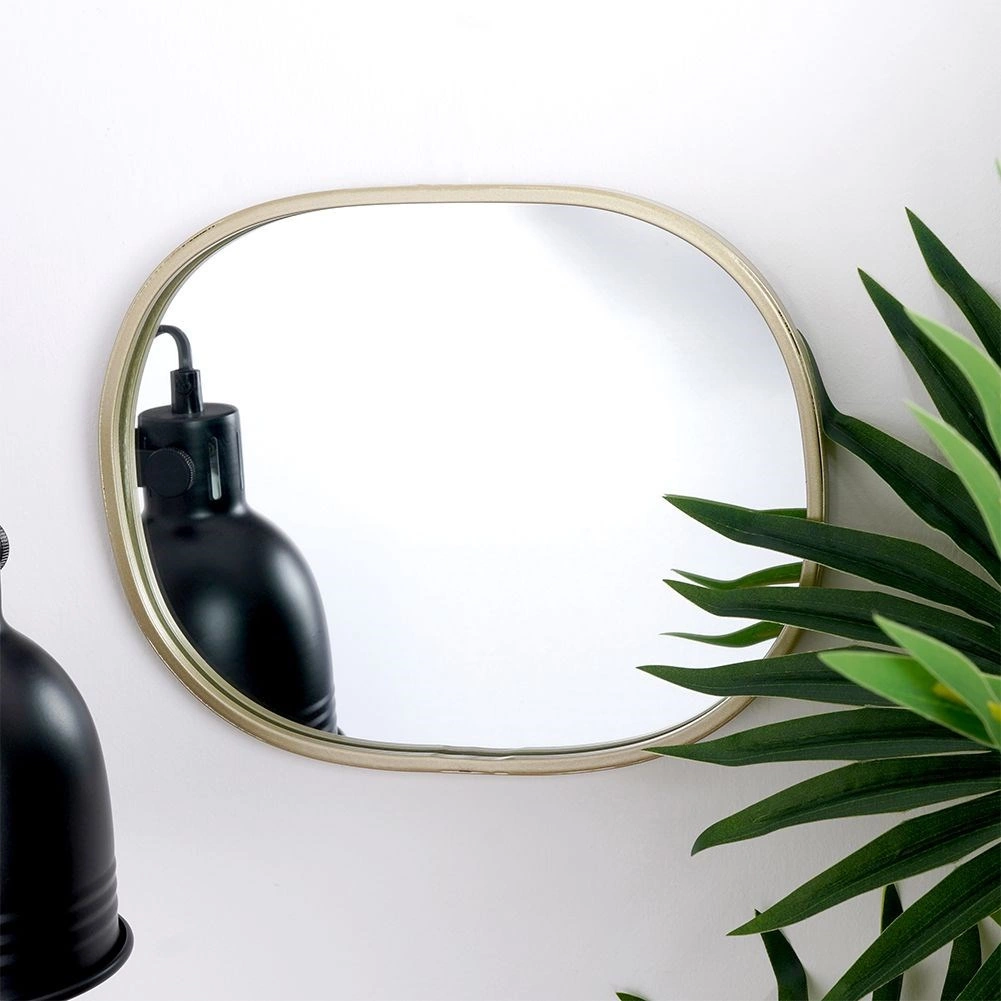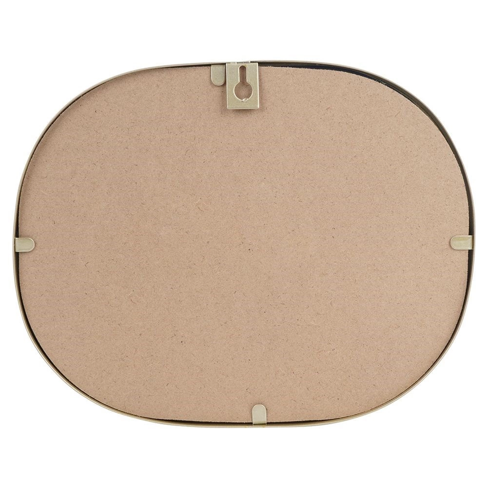 Eleganckie lustro ścienne w odcieniu szampańskiego złota o owalnym kształcie doda wnętrzu stylu i światła. Dzięki kompaktowym wymiarom 20 × 25,5 cm jest idealne do mniejszych przestrzeni. Metalowa rama zapewnia trwałość, czyste i wyraźne odbicie oraz łatwe zawieszenie na ścianie. Świetnie pasuje do nowoczesnych i klasycznych wnętrz, pełniąc funkcję elementu dekoracyjnego i praktycznego pomocnika.