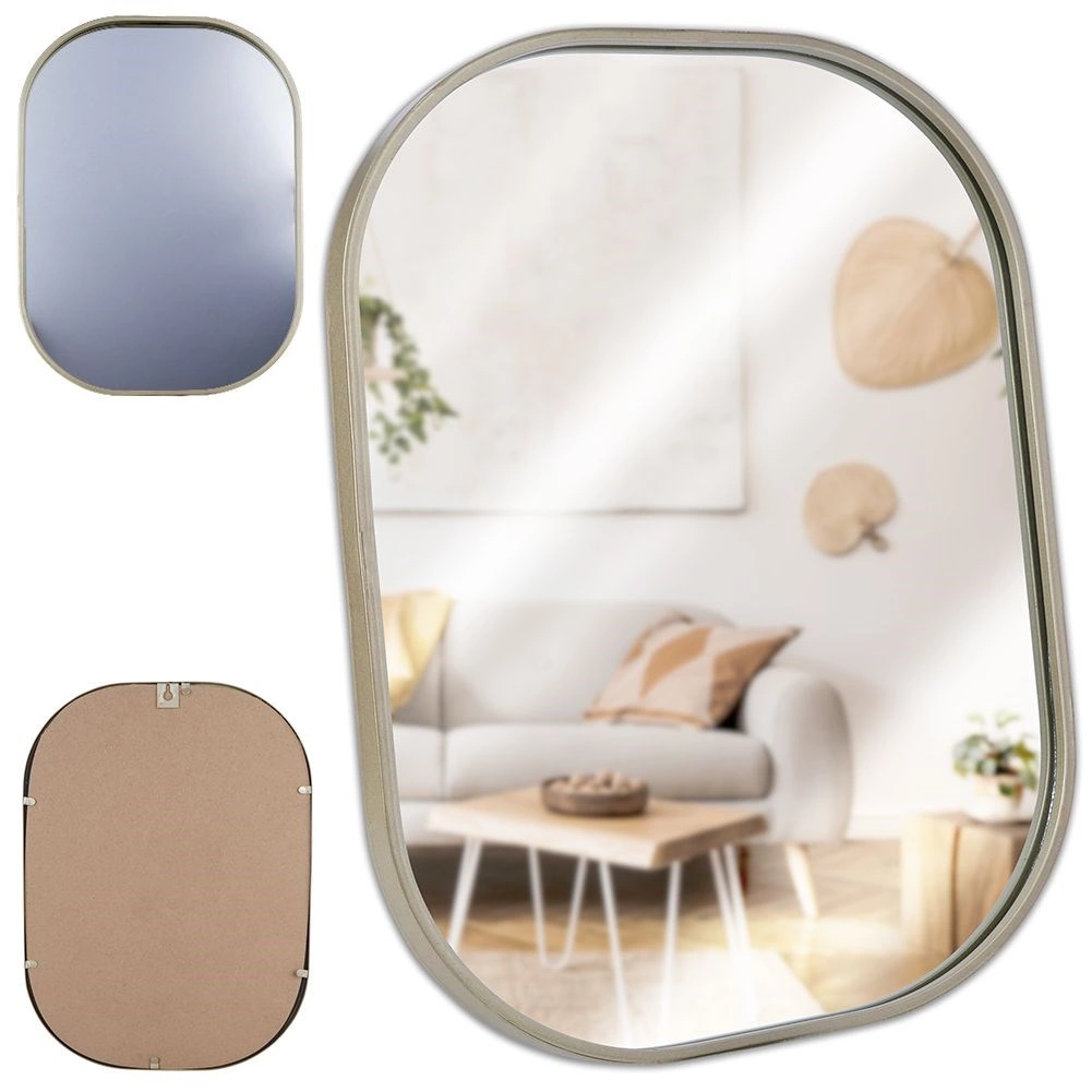 Eleganckie owalne lustro ścienne ze złotą, metalową listwą ramową doda wnętrzu stylu i jasności. Dzięki kompaktowym wymiarom 28 × 40 cm doskonale sprawdzi się w przedpokoju, salonie i sypialni. Staranne wykonanie zapewnia czysty i ostry obraz, stając się elementem dekoracyjnym zarówno w nowoczesnych, jak i klasycznych aranżacjach.