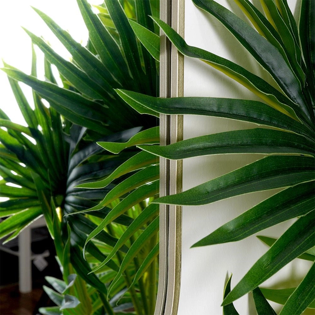 Designerskie owalne lustro w odcieniu szampańskiego złota wyróżnia się jako praktyczny i estetyczny dodatek. Metalowa listwa ramowa wygląda elegancko i ponadczasowo, jednocześnie chroni krawędzie i zapewnia długą trwałość. Lustro można łatwo zawiesić na ścianie za pomocą przygotowanego wieszaka, co podkreśli atmosferę pomieszczenia i optycznie je rozjaśni i powiększy.
