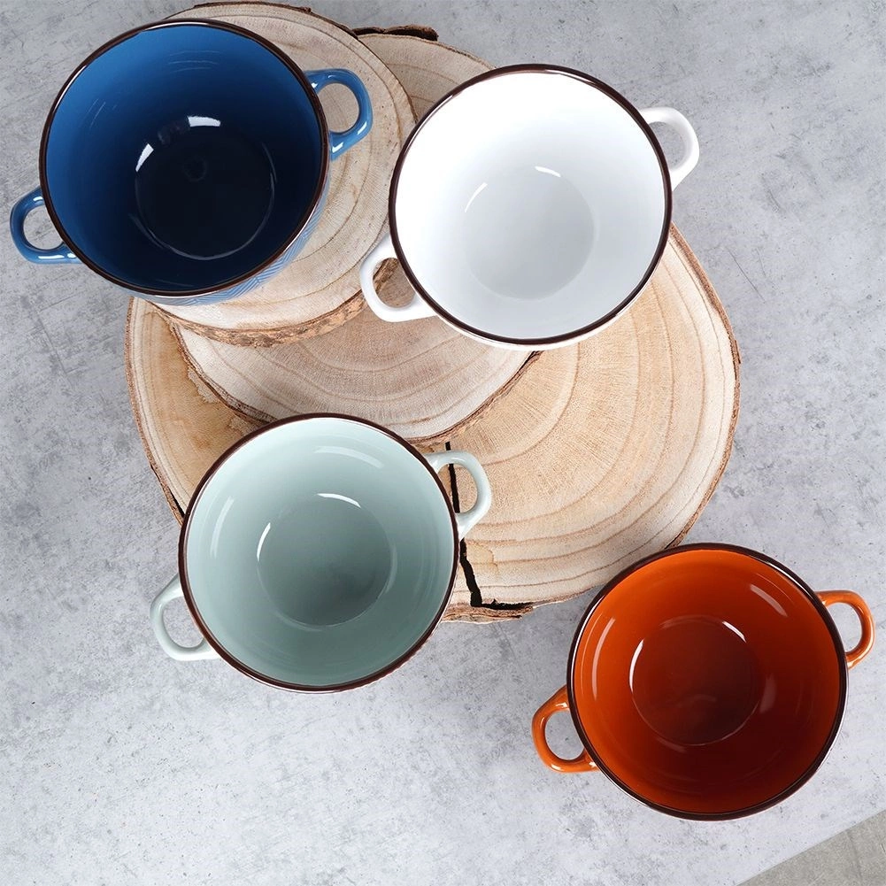 Zestaw czterech misek z praktycznymi uchami ułatwia serwowanie gorących zup, dań duszonych i przekąsek. Każda miska ma pojemność 620 ml i wymiary 18 × 14 × 8 cm, dzięki czemu oferuje dużo miejsca na syte porcje. Wysokiej jakości ceramika z błyszczącym szkliwem jest trwała i łatwa w utrzymaniu.