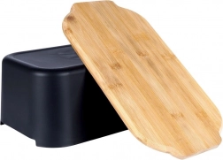 Nowoczesny chlebak łączy wytrzymały plastikowy korpus w matowej czerni z naturalną bambusową pokrywką. Pokrywkę można wykorzystać jako deskę do krojenia, więc wszystko, czego potrzebujesz do serwowania pieczywa, masz zawsze pod ręką. Dzięki kompaktowym wymiarom 33 × 18,5 × 12 cm łatwo mieści się na blacie, a jednocześnie pomieści różne rodzaje pieczywa.