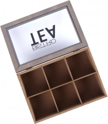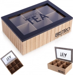 Zaprowadź porządek w swojej kolekcji herbat dzięki eleganckiemu pudełku, które łączy praktyczną organizację z atrakcyjnym designem. Sześć oddzielnych przegródek umożliwia sortowanie różnych rodzajów i smaków herbaty, a szklane wieko z czarną ramą zapewnia szybki podgląd zawartości. Idealne do domu, kawiarni, bistro czy biura.