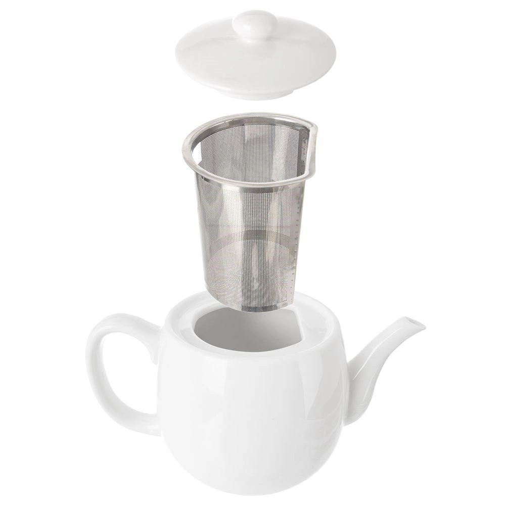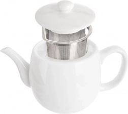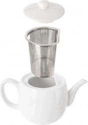 Dzbanek wykonano z wysokiej jakości białej porcelany, która świetnie komponuje się z każdą zastawą i łatwo się czyści. Sam dzbanek (bez sitka) można myć w zmywarce i używać w kuchence mikrofalowej. Idealny jako gustowny prezent dla miłośników herbaty.