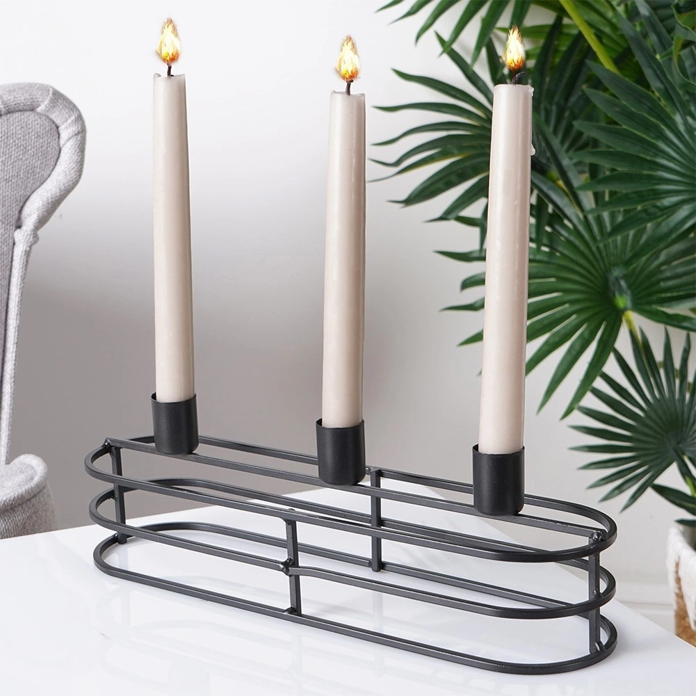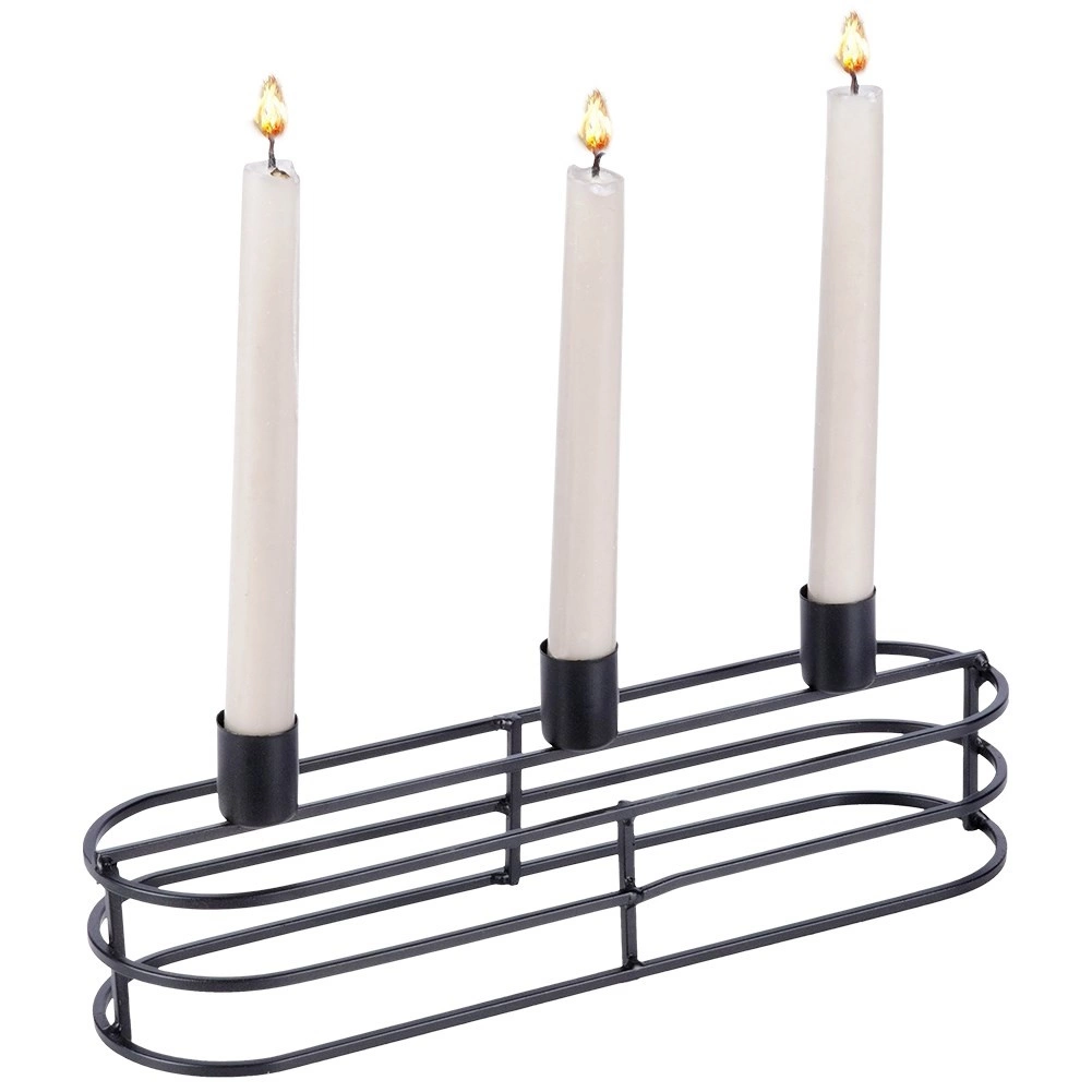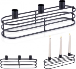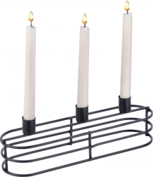 Trzy cylindryczne uchwyty bezpiecznie trzymają świece w jednym rzędzie. Idealny na świece o średnicy do 2 cm i do efektownych aranżacji stołowych.