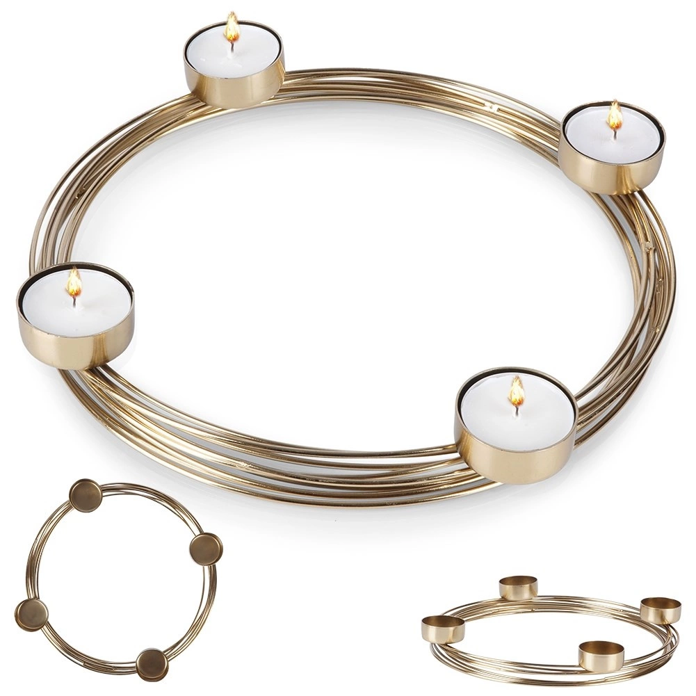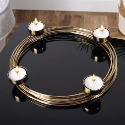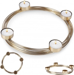 Okrągła konstrukcja z czterema równomiernie rozmieszczonymi miseczkami bezpiecznie utrzymuje małe świeczki i tworzy harmonijne, nastrojowe światło.
