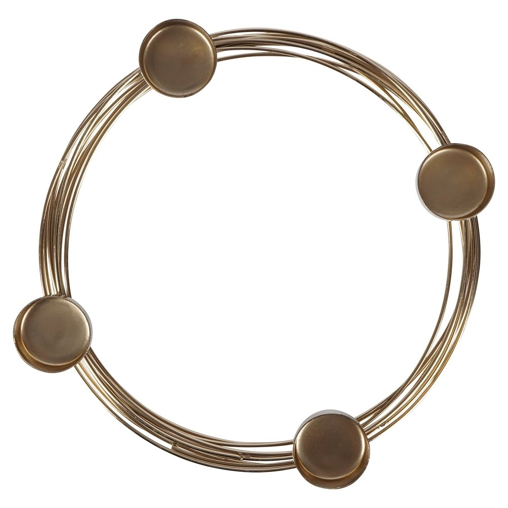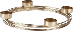 Ten stylowy świecznik z wysokiej jakości metalu w luksusowym złotym wykończeniu pomieści do czterech tealightów i rozświetli Twoje wnętrze przyjemnym, ambientowym światłem. Dzięki czystej, okrągłej formie z wieloma drucianymi pierścieniami wyróżnia się nowoczesnym, minimalistycznym wyglądem, który doskonale komponuje się zarówno z nowoczesnymi, jak i klasycznymi aranżacjami.