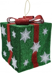 Stwórz świąteczny nastrój w domu i ogrodzie dzięki temu wyrazistemu świecącemu prezentowi. Lśniąca zielona powierzchnia, kontrastowa czerwona wstążka i białe płatki śniegu przyciągają uwagę w ciągu dnia, a 14 kolorowych, zmieniających barwę diod LED wieczorem roztacza przyjemne światło. Dekoracja jest składana, więc po sezonie łatwo ją przechowasz.