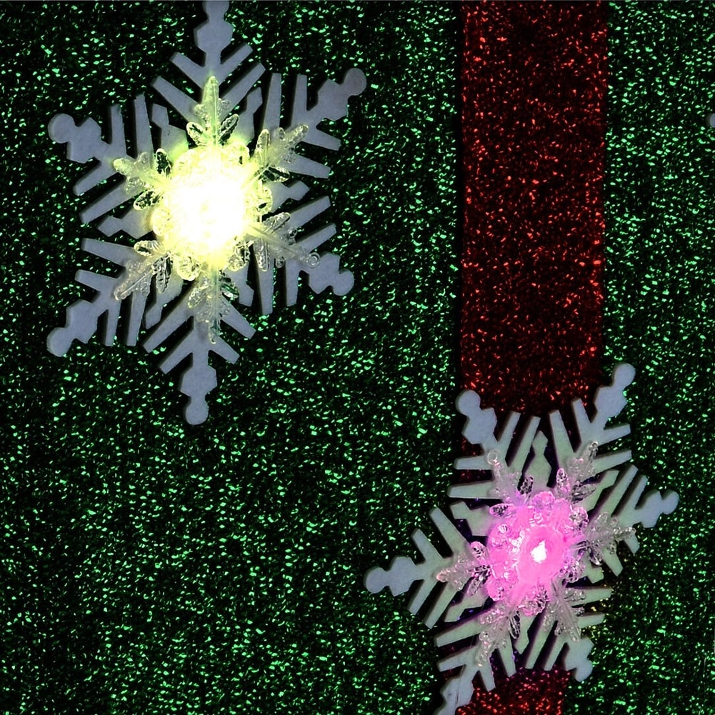 Błyszcząca zielona powierzchnia z płatkami śniegu i czerwoną kokardą stworzy przyciągający wzrok akcent zarówno w domu, jak i w ogrodzie.