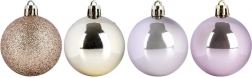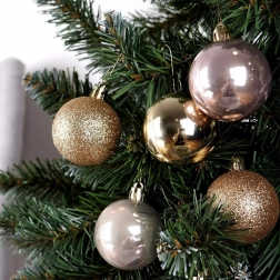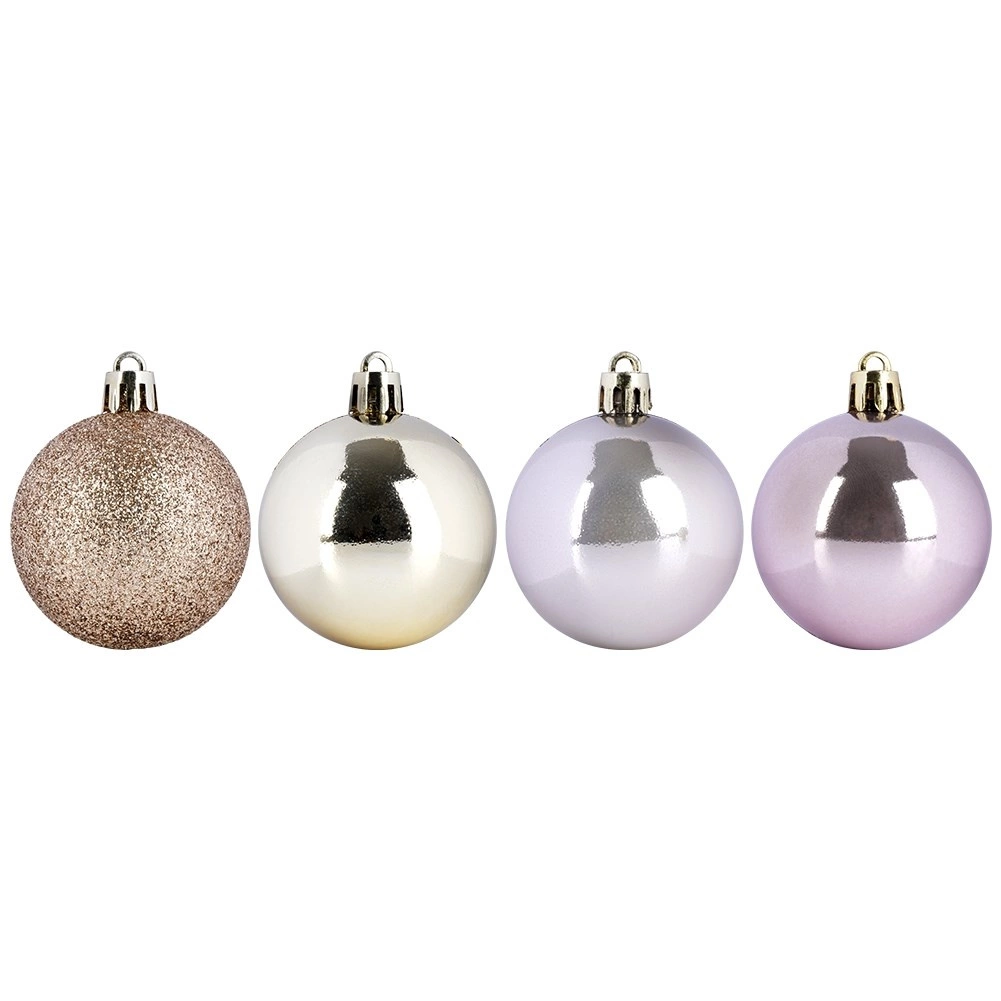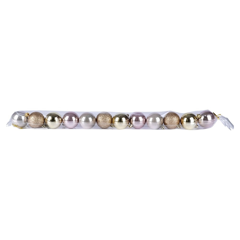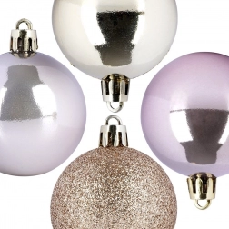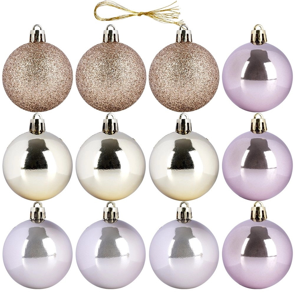 Dzięki temu stylowemu zestawowi bombek z łatwością stworzysz magiczną, świąteczną atmosferę na choince, w wiankach i świątecznych kompozycjach. Różowo‑złota paleta oraz miks wykończeń (połysk i brokat) zapewniają nowoczesny i elegancki wygląd, który pasuje do klasycznych i współczesnych wnętrz.