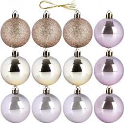 Elegancki zestaw 12 bombek w odcieniach różu i złota doda Twoim dekoracjom wyjątkowego blasku. Bombki o średnicy 5 cm wykonane są z wysokiej jakości plastiku, dzięki czemu są nietłukące się, bezpieczne dla dzieci i zwierząt domowych, a jednocześnie wyglądają jak szklane ozdoby. Połączenie błyszczących i brokatowych wykończeń tworzy harmonijny, świąteczny efekt.