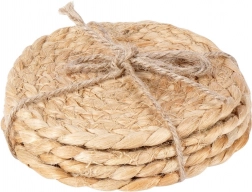 Stylowe, ekologiczne i wytrzymałe podkładki z naturalnej juty o średnicy 10 cm w zestawie 4 szt. Doskonale chronią stół przed ciepłem, wilgocią i zarysowaniami, a jednocześnie stanowią piękną dekorację w stylu boho. Odpowiednie do gorących i zimnych napojów, lekkie i trwałe, o naturalnej fakturze i uniwersalnym zastosowaniu w każdym domu.