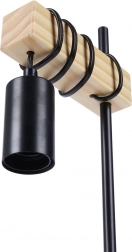Połączenie matowej czerni i naturalnego drewna podkreśla nowoczesny loftowy wygląd i czyni lampę wyrazistym elementem wystroju.