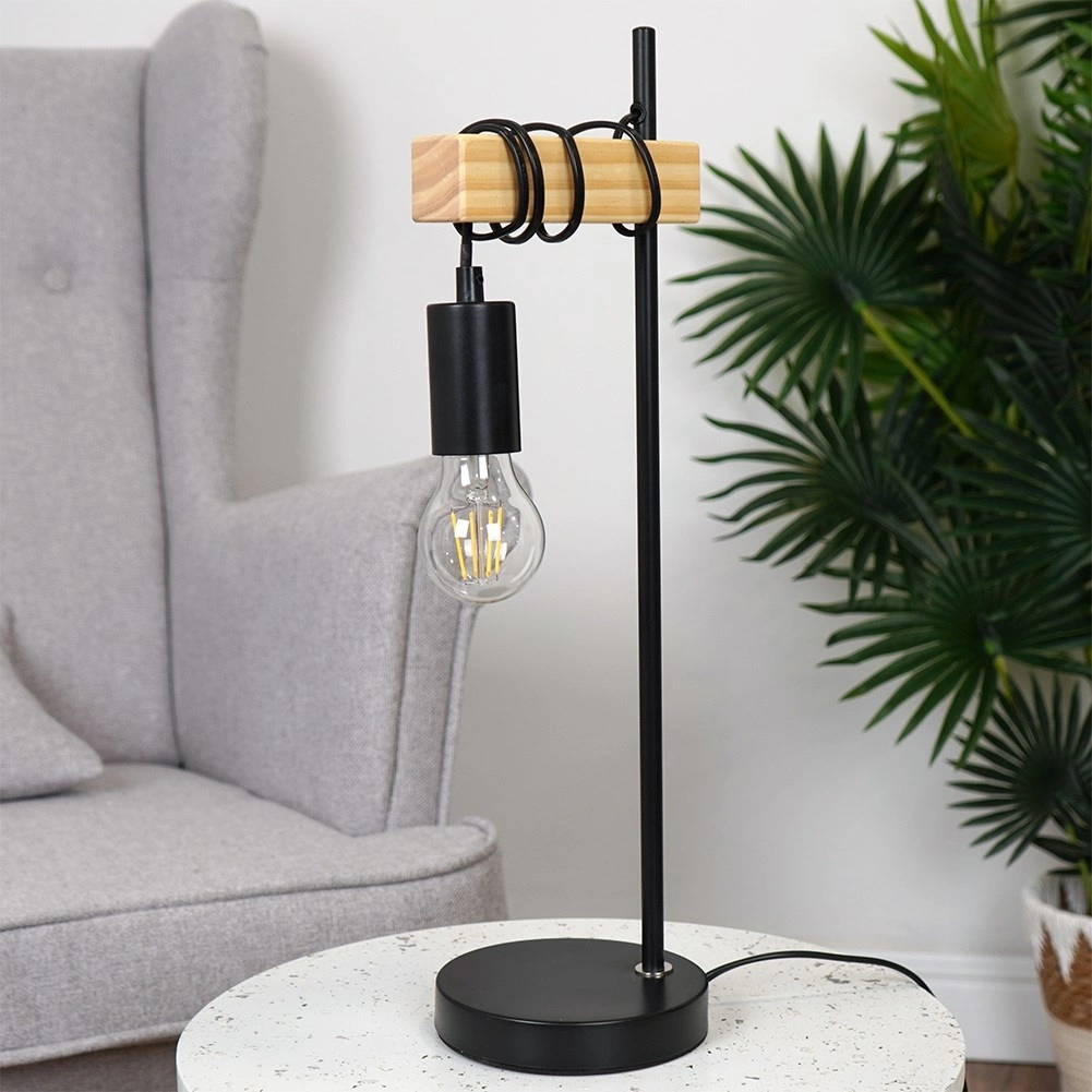 Ta nowoczesna lampa stołowa w matowej czerni z drewnianym elementem doskonale uzupełni wnętrza w stylu loft, skandynawskim i nowoczesnym. Dzięki połączeniu metalu i naturalnego drewna prezentuje się elegancko i ponadczasowo, zapewniając przyjemne światło ambientowe i do pracy.
