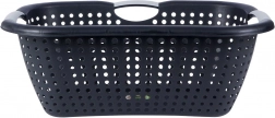 Ten uniwersalny kosz na pranie w eleganckim czarnym kolorze oferuje pojemność 26 litrów i przemyślany kształt do wygodnego użytkowania w domu i pralni. Dzięki perforacji po bokach pranie lepiej się wietrzy i pozostaje świeże.