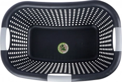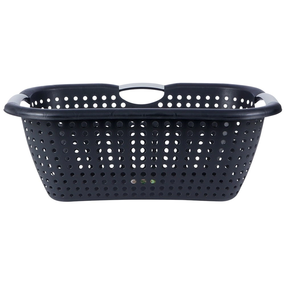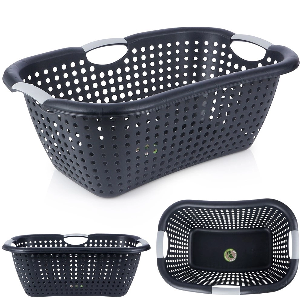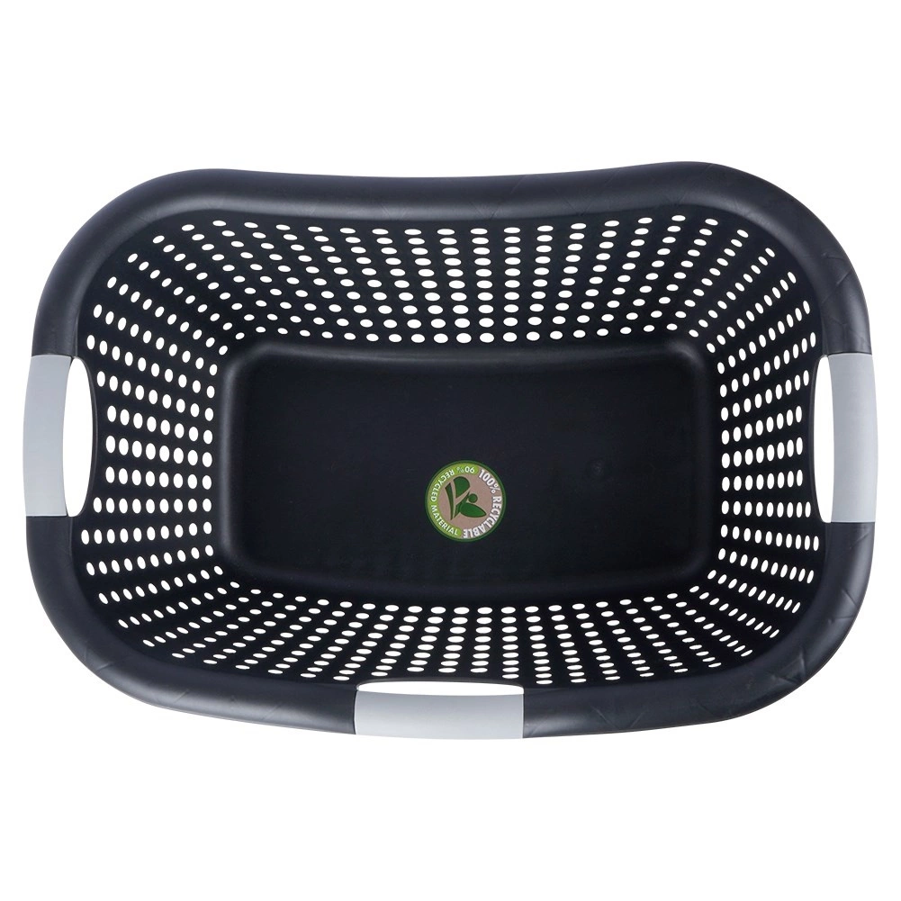 Lekki i wytrzymały plastikowy kosz na pranie o pojemności 26 l z ergonomicznymi uchwytami i perforowanymi ściankami dla lepszej cyrkulacji powietrza. Wykonany w 90% z materiału z recyklingu i w 100% nadający się do recyklingu. Idealny do przenoszenia i wietrzenia czystej oraz brudnej bielizny.