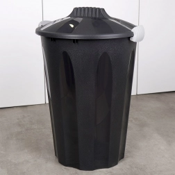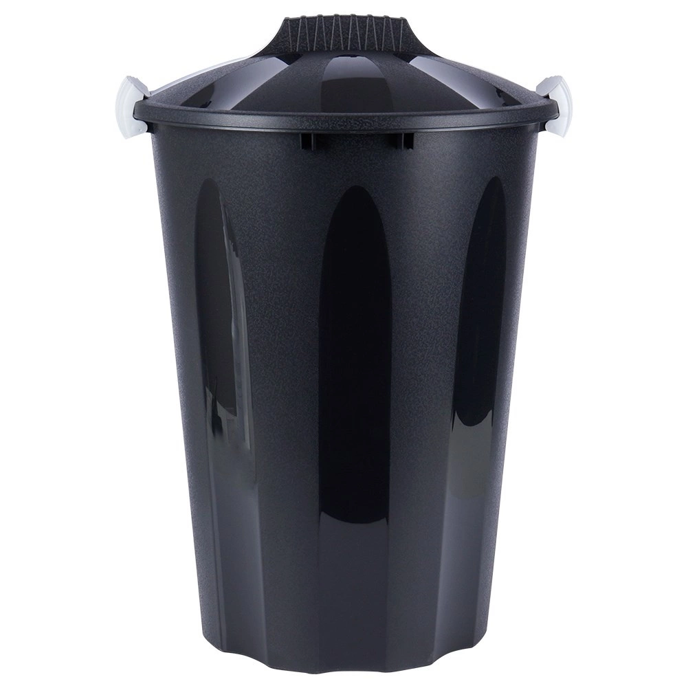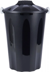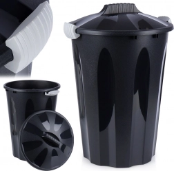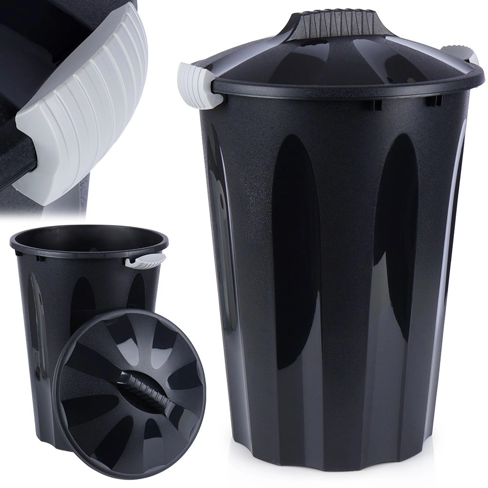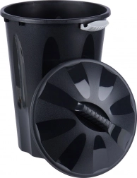 Praktyczny czarny kosz na śmieci o pojemności 50 l z dobrze przylegającą pokrywą i wygodnymi uchwytami pomaga utrzymać porządek i zapachy pod kontrolą. Wykonany z wytrzymałego plastiku z udziałem 90% materiału z recyklingu, jest lekki, stabilny i w 100% podlega recyklingowi.