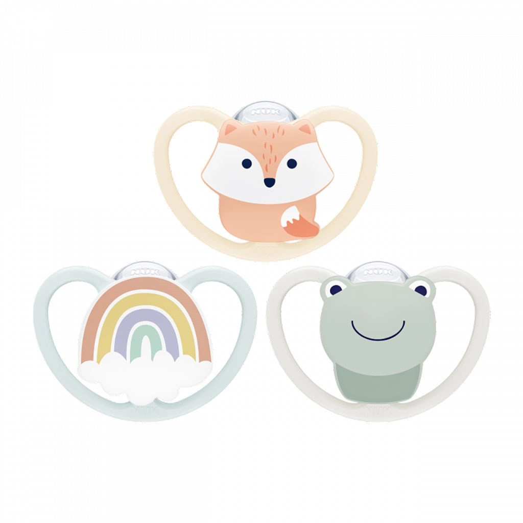 Smoczek NUK Space został zaprojektowany z myślą o maksymalnym komforcie i zdrowym rozwoju jamy ustnej. Dzięki ortodontycznemu kształtowi respektuje naturalny kształt podniebienia i szczęk, a wyjątkowo duże otwory wentylacyjne pozwalają skórze swobodnie oddychać i zmniejszają podrażnienia. Urocze motywy zwierzątek pokochają zarówno dzieci, jak i rodzice.