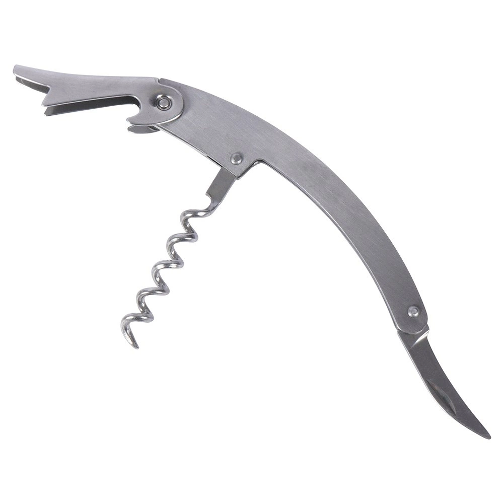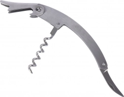 Składany korkociąg kelnerski z wkrętem, dźwignią i nożykiem do folii umożliwia szybkie i bezpieczne otwieranie butelek oraz zdejmowanie kapsli koronowych.