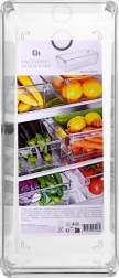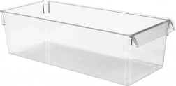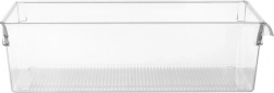 Praktyczny organizer do lodówki o wymiarach 36 × 15 × 10 cm z przezroczystego, bezpiecznego dla żywności plastiku. Umożliwia przejrzyste przechowywanie produktów, łatwe wysuwanie dzięki zintegrowanym uchwytom oraz szybkie sprawdzanie zawartości. Idealny na owoce, warzywa i inne artykuły spożywcze, o wytrzymałej konstrukcji i łatwej pielęgnacji.