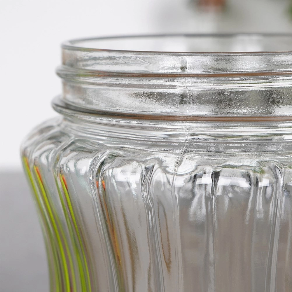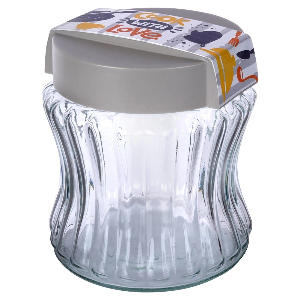 Stylowy szklany pojemnik z pofalowanym reliefem i jasno szarą pokrywą idealnie nadaje się do przechowywania mąki, cukru, soli, bułki tartej, orzechów, kawy czy herbaty. Solidne, przejrzyste szkło bez BPA jest bezpieczne dla żywności i umożliwia natychmiastową kontrolę zawartości bez otwierania.