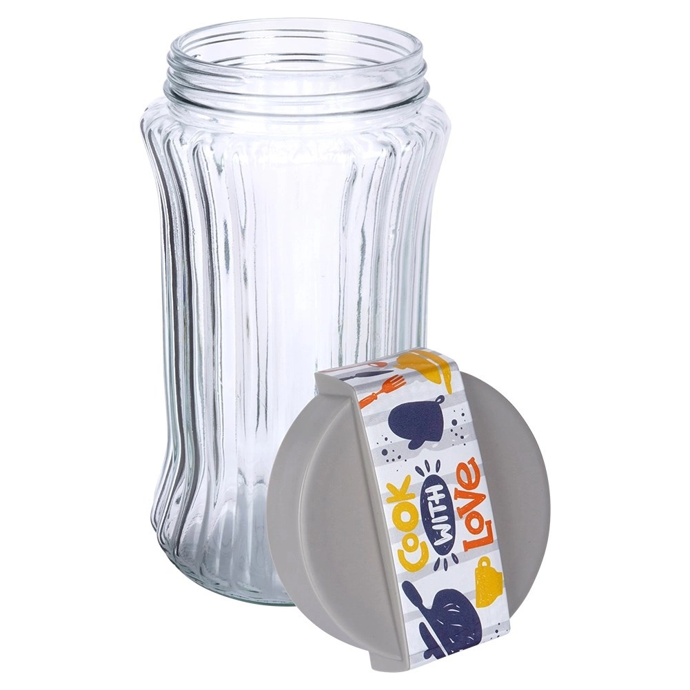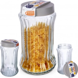 Elegancki i funkcjonalny szklany pojemnik ułatwi organizację kuchni i wydłuży świeżość produktów. Dzięki zakręcanej pokrywce z uszczelką chroni zawartość przed wilgocią i zapachami, a przezroczyste szkło pozwala na natychmiastową kontrolę ilości. Żłobione ścianki zapewniają pewny chwyt i stylowy wygląd na blacie i w spiżarni.