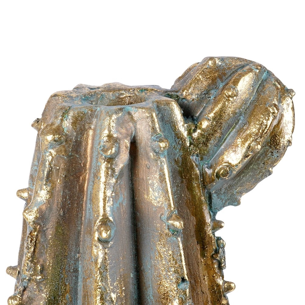 Stylowy dekoracyjny wazon w kształcie kaktusa w eleganckim złotym kolorze ozdobi każde wnętrze. Dzięki wysokości 47,5 cm idealnie nadaje się na kwiaty cięte, rośliny suszone oraz dekoracyjne gałązki. Wysoka jakość wykonania i efektowny metaliczny wygląd podkreślą charakter nowoczesnego i klasycznego domu.