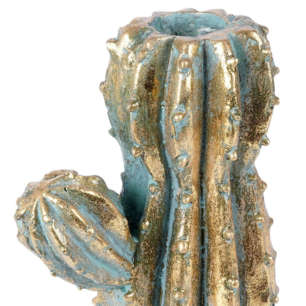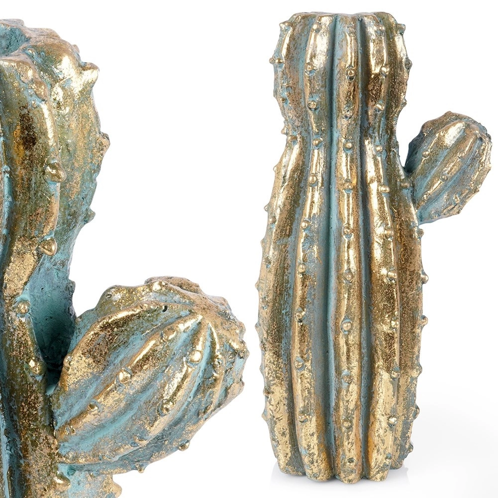 Stylowa waza w kształcie kaktusa ze złotym, metalicznym efektem doda wnętrzu wyjątkowego blasku. Idealna do świeżych i suszonych kwiatów, dekoracyjnych gałązek oraz jako samodzielny element designerski. Dzięki realistycznej fakturze i wysokiej jakości wykonania prezentuje się jak luksusowy dodatek do salonu, sypialni i biura.