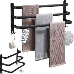 Trzy poziome drążki pozwalają rozwiesić kilka ręczników jednocześnie, aby szybciej wyschły i pozostały świeże.