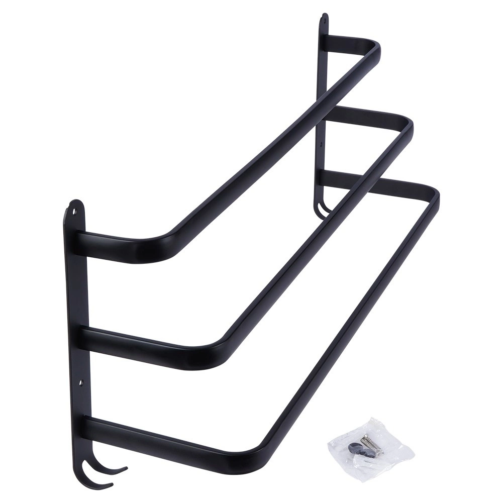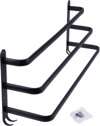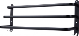 Praktyczny i elegancki uchwyt na ręczniki z trzema równoległymi ramionami zapewnia dużo miejsca do suszenia i organizacji. Cztery dolne haczyki przydadzą się na myjki, szczotki czy inne akcesoria łazienkowe. Trwałe wykonanie w matowej czerni podkreśli nowoczesne, industrialne oraz klasyczne łazienki.