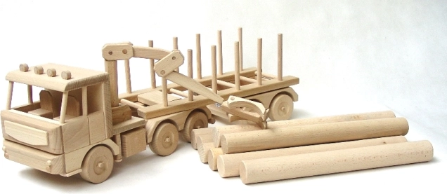Ten solidny drewniany tir jest dopracowany w każdym detalu. Dzieci pokochają łatwe załadunek i rozładunek dzięki ruchomemu ramieniu, zdejmowanym kłodom oraz przyczepie, która skręca na boki. Wykonany z twardego drewna bukowego, które wytrzyma nawet intensywną zabawę.