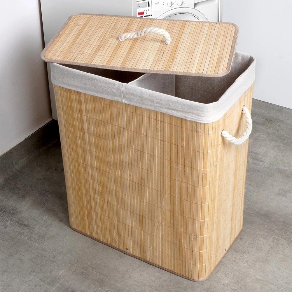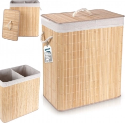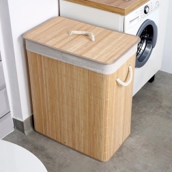 Tekstylny wkład jest podzielony na dwie komory, dzięki czemu z łatwością posortujesz pranie już podczas odkładania. Wkład można także wyjąć i wyprać, co ułatwia pielęgnację. Dzięki bocznym linowym uchwytom kosz wygodnie przeniesiesz tam, gdzie akurat go potrzebujesz.