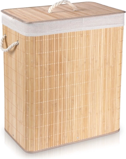 Utrzymuj porządek w domu z pojemnym bambusowym koszem na pranie Vilde. Naturalny materiał w beżowym odcieniu i czysty design łatwo dopasować do każdego wnętrza. Stabilna konstrukcja z bambusowych listew jest lekka, a jednocześnie trwała, a zdejmowana pokrywa pomaga zatrzymać nieprzyjemne zapachy i zachować estetyczny wygląd pomieszczenia.