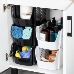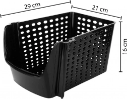 Dzięki neutralnemu czarnemu kolorowi łatwo łączy się z wyposażeniem domu. Świetnie sprawdzi się nie tylko na żywność, ale także na środki czystości, drobny domowy asortyment czy artykuły biurowe. Przy zakupie kilku sztuk można je piętrować, oszczędzając cenne miejsce.