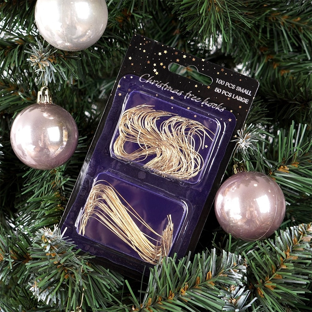 Praktyczny zestaw 150 złotych haczyków do zawieszania ozdób świątecznych i bombek na choince. Zawiera 100 mniejszych (4 cm) oraz 50 większych (6 cm) haczyków, które są wytrzymałe, wielokrotnego użytku i dzięki ergonomicznemu kształtowi umożliwiają szybkie i bezpieczne zawieszanie, także dla dzieci.