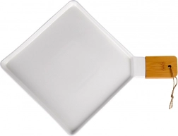 Elegancki półmisek do serwowania z wysokiej jakości porcelany z bambusową rączką dla łatwego przenoszenia. Idealny do stylowego serwowania przystawek, dań głównych i deserów. Trwałe wykonanie w ponadczasowej bieli doskonale sprawdzi się w domu i w gastronomii. Dzięki praktycznemu otworowi ze sznurkiem półmisek można zawiesić, aby zawsze był pod ręką.