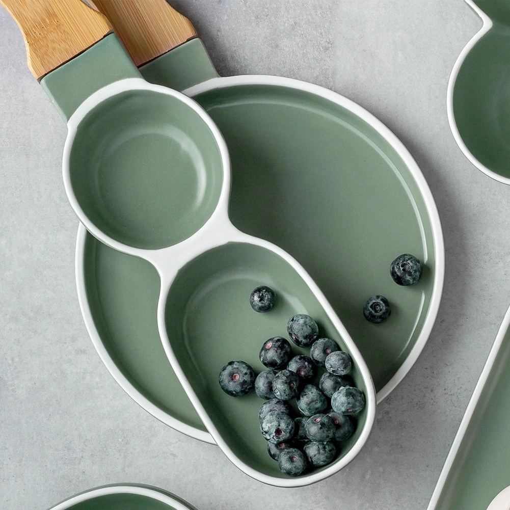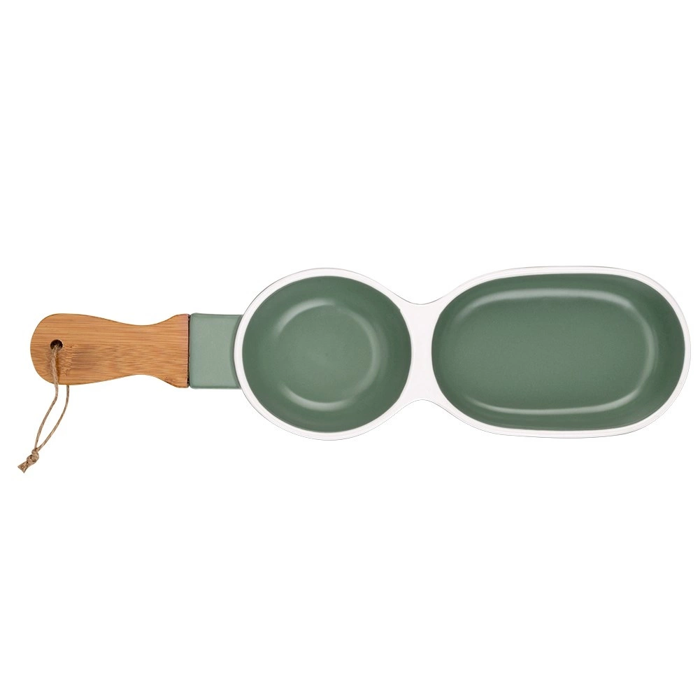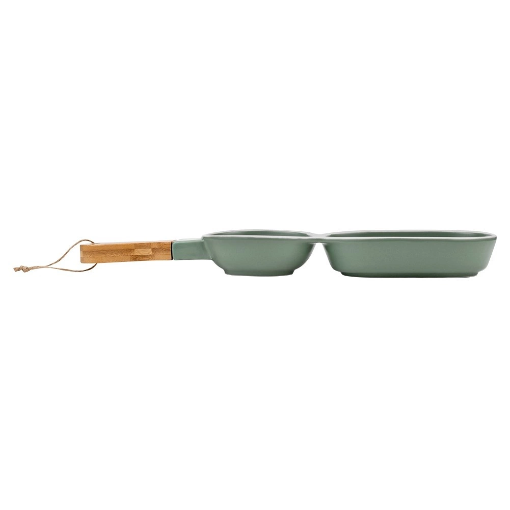 Odkryj praktyczny i designerski talerz do efektownego serwowania. Podzielona powierzchnia pozwala oddzielać smaki i tekstury, dzięki czemu sosy i przekąski się nie mieszają. Ergonomiczny bambusowy uchwyt ułatwia przenoszenie, a dzięki otworowi ze sznurkiem talerz można także zawiesić.