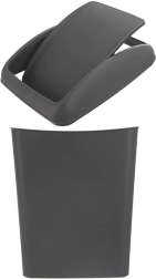 Ten praktyczny kosz z uchylną klapą (typ kołyska) ułatwia wyrzucanie drobnych odpadków bez konieczności dotyku. Pojemność 5 l oraz wymiary 17,5 × 13 × 25 cm czynią go idealnym wyborem do mniejszych przestrzeni – na podłogę, blat roboczy i do szafki. Matowa, ciemnoszara powierzchnia wygląda nowocześnie i łatwo komponuje się z różnymi stylami wnętrz.